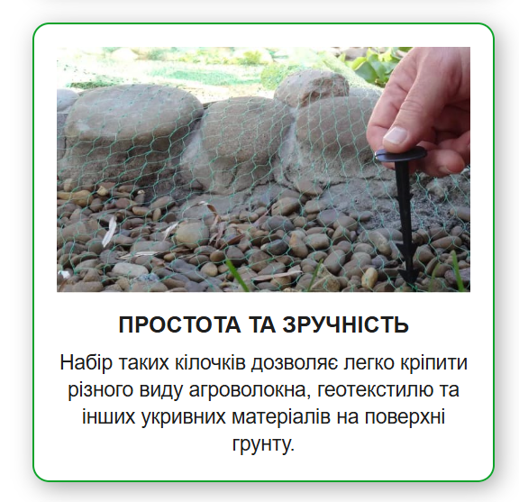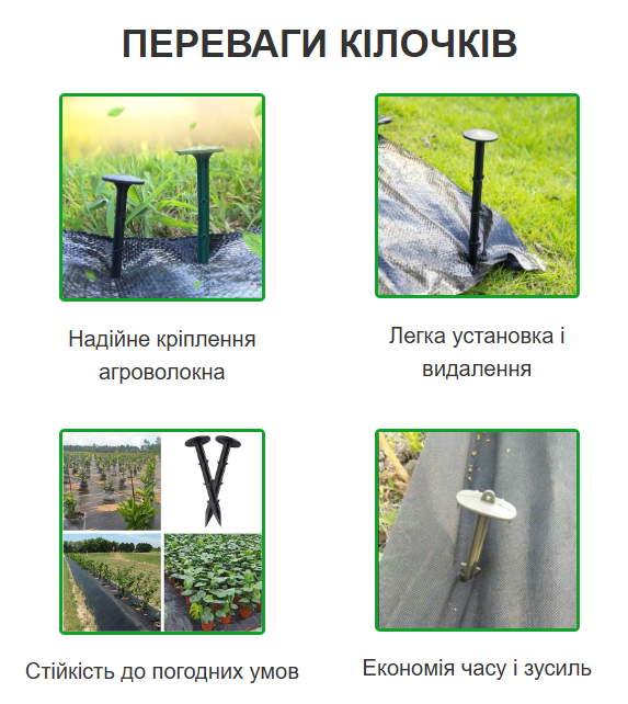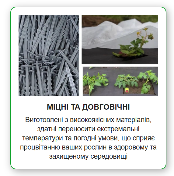 Ці кілочки підходять для кріплення агротканини та для підв'язки рослин.